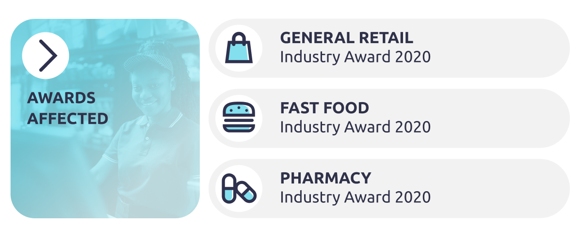For businesses employing staff under the General Retail Industry Award, Fast Food Industry Award or Pharmacy Industry Award, this means: