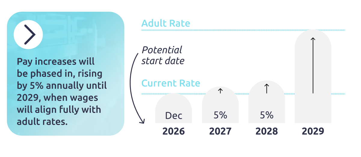 The Commission has indicated that these changes will be introduced gradually, with the changes potentially starting from 1 December 2026. Pay increases will be phased in, rising by 5% annually until 2029, when wages will align fully with adult rates.