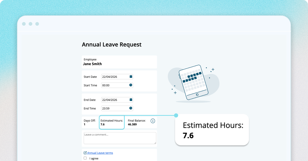 When an employee requests leave, Microkeeper now factors in their contracted hours when calculating the estimated hours. The result is more accurate at the point of request, reducing back-and-forth between employees and managers before leave is approved.
