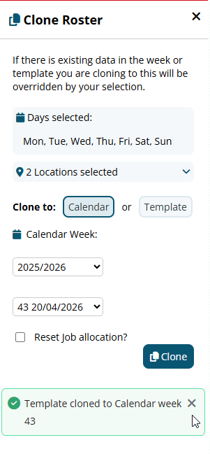 Cloning a roster over existing shifts will now prompt a warning before anything is overwritten, a small change that prevents a frustrating and easily avoidable mistake.