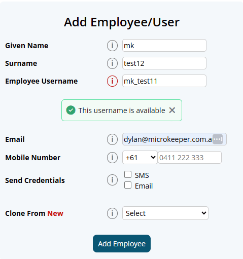 On a related note, when addnig a new employee a warning will now flag if another employee with the same mobile number or email address already exists in the system.